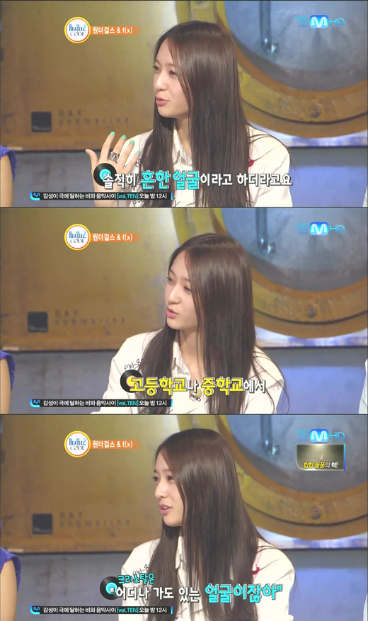 Sohee of the Wonder Girls, who also featured as guests on the episode, commented, “I don’t have a common face, but I think I have an ordinary face.” However, she also mentioned that she feels she’s the best looking out of her group, saying, “I love and am very dear to myself.”